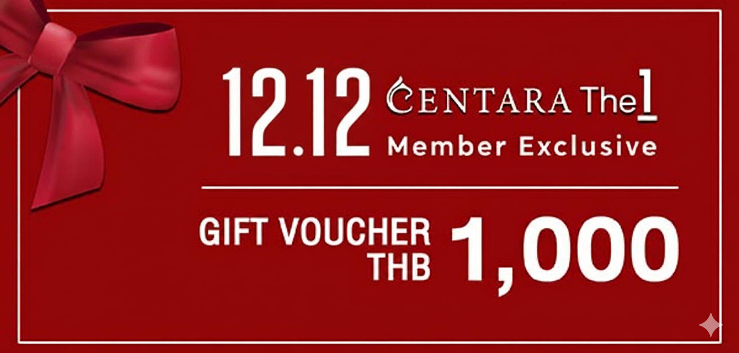 Centara pre-paid gift voucher can be used to cover room charges, food and beverage, or spa services at all Centara Hotels & Resorts.